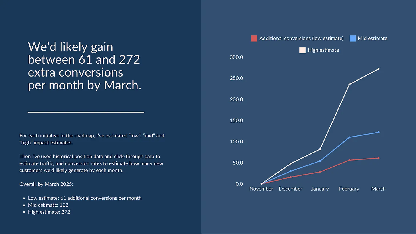 💡 From 500 to 50,000 monthly clicks 💡 $12,978 increase in est. traffic valueI rootle through your SEO data like a happy little pig, and I find what others miss.